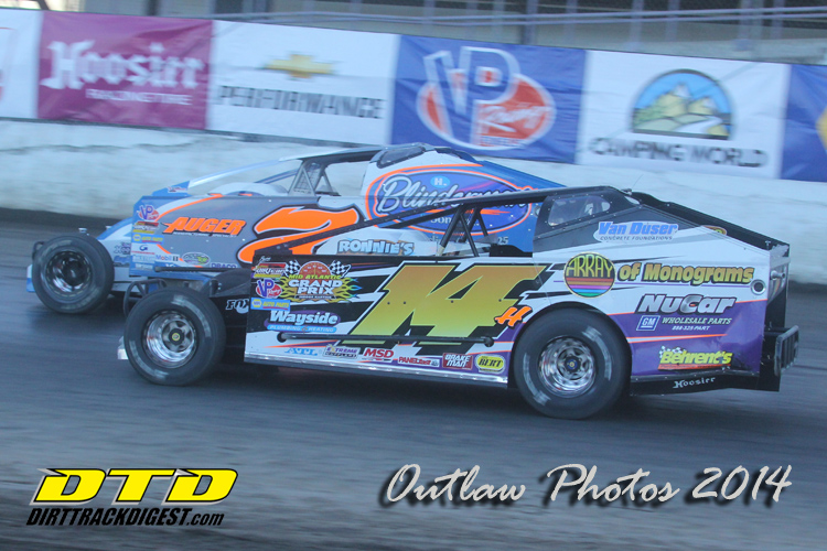 The Jeffer Jeff Heotzler and Rick Labauch race down the front stretch at the New York State Fairgrounds