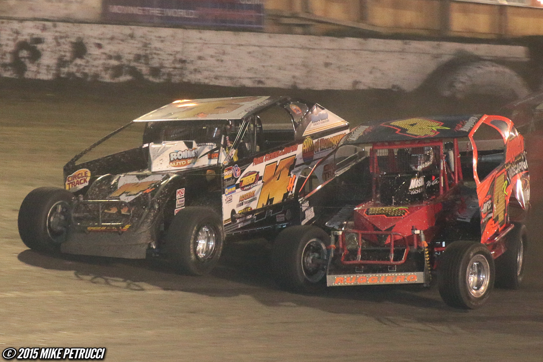 Jeff Heotzler and Mike Ruggiero battle for position during the Eastern States 200 at the Orange County Fair Speedway!